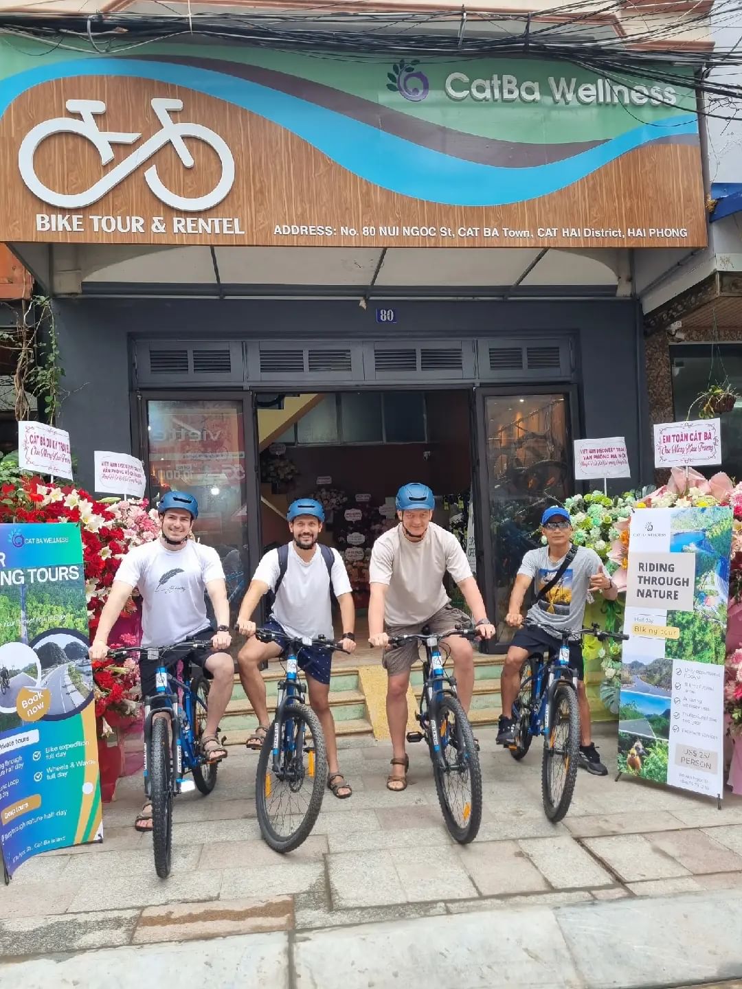 If you are looking for a closeness of local life and wish to experience the daily rhythm of people onthis small island, “Delighting Cát Bà” is the perfect choice. In just one hour, you’ll pedal throughsmall alleys, gentle slopes, and rustic paths where local residents live. The route takes you past HangVẹm, the stadium, and old apartment blocks – each corner telling a story of Cát Bà’s simple andauthentic lifestyle.The highlight of the journey are two local markets:  Con Market  and  Cát Bà Central Market.Without needing to stop too long, just by blending into the crowd of buyers and sellers, hearing thecheerful calls, and catching the aroma of fresh seafood or local fruits, you will discover a Cát Bà thatis genuine and full of life.This is not only a journey to seek grand landscapes, but also a trip that lets you taste the heartbeat ofthe island and embrace the tranquillity of seaside villages nestled beneath the mountains.